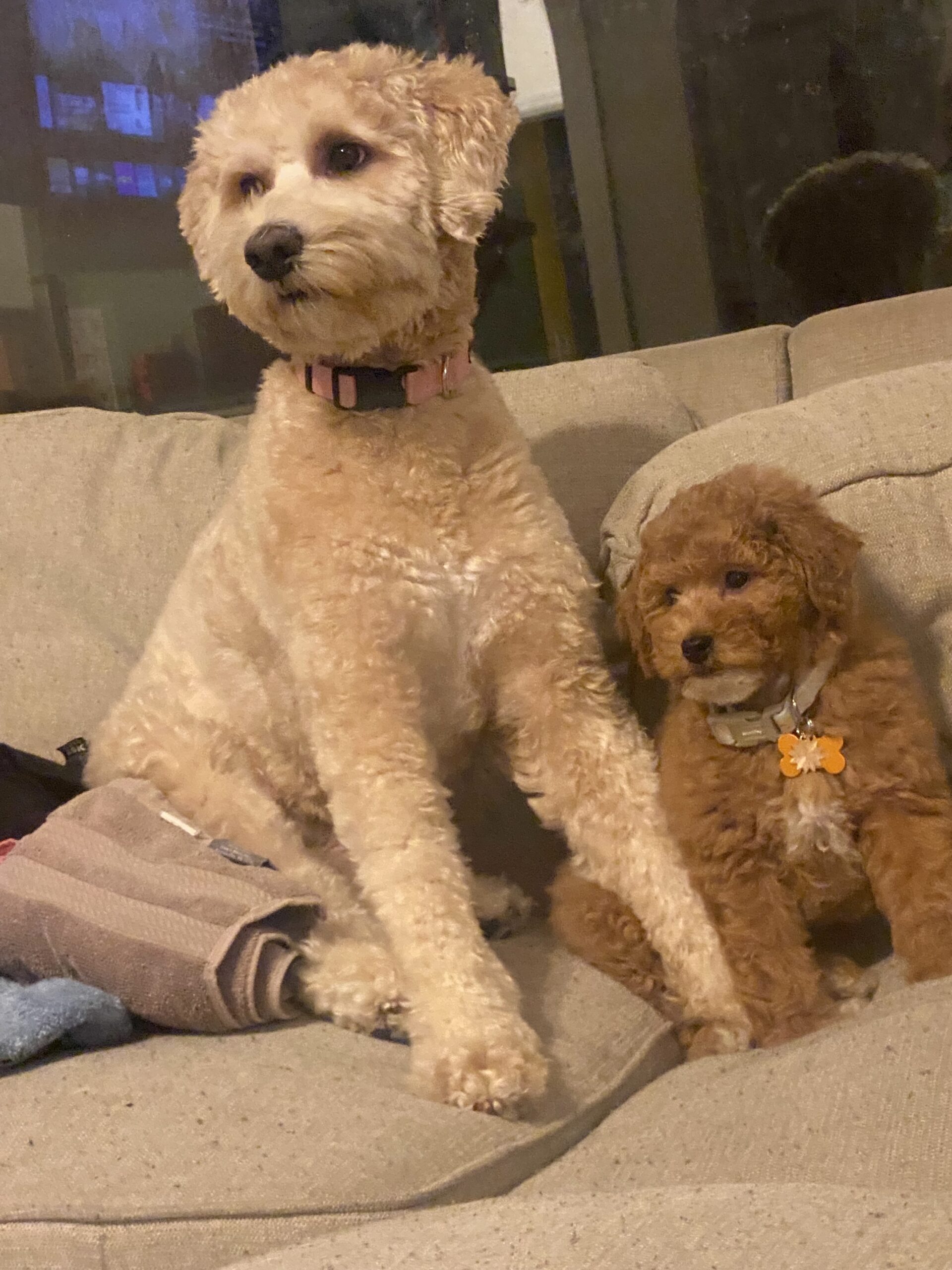 Dogs are an accelerated version of generational changes. We watched our puppy grow into a mom and have her own little puppies. This beautiful, energetic tan doodle became a mother to a golden brown doodle with a his own little fun personality. Suddenly, our first puppy knew how to be a mother. She watches over the fella and hardly lets him leave her sight.